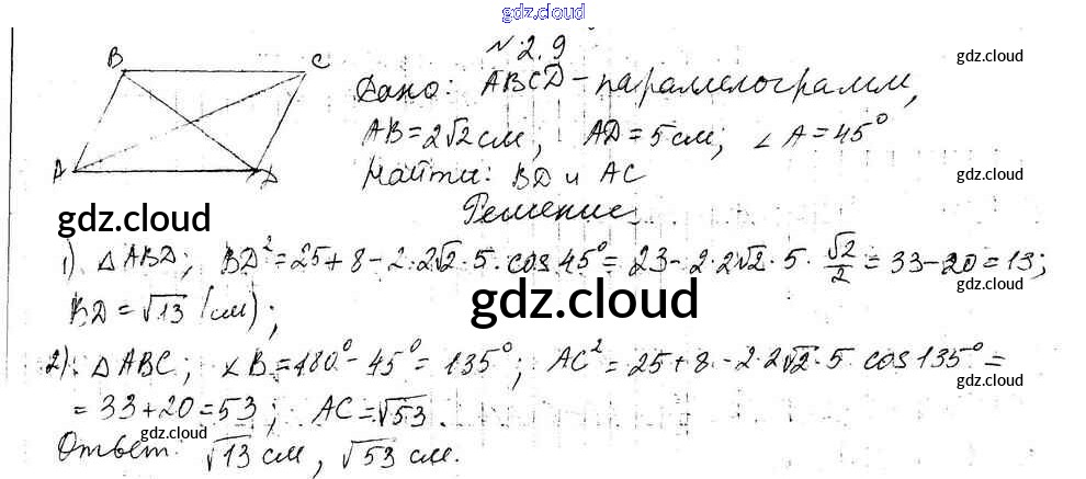 Ответ на задание 2.9 Учебник Геометрия за 9 (девятый) класс Мерзляк, Поляков Углубленный уровень 2019