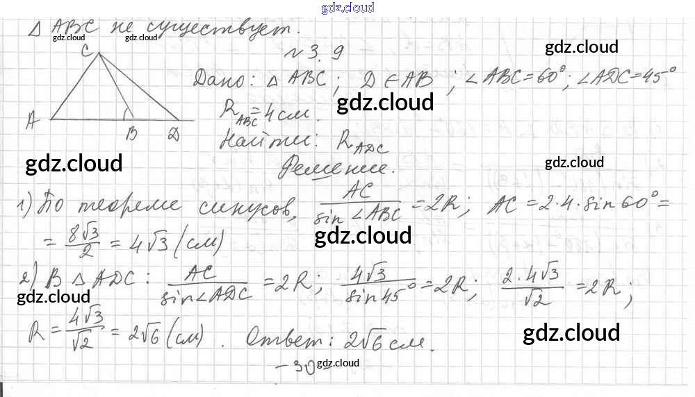 Ответ на задание 3.9 Учебник Геометрия за 9 (девятый) класс Мерзляк, Поляков Углубленный уровень 2019