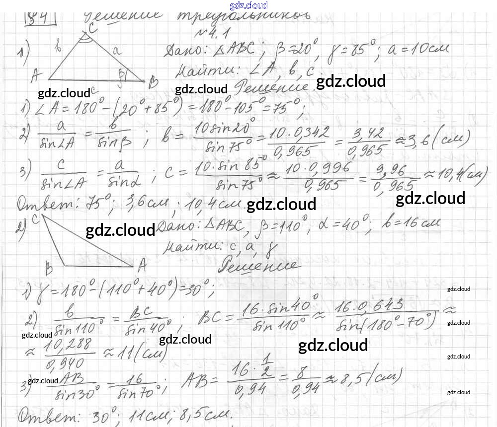 §4 Ответы к Главе 1. Решение треугольников по Геометрии 9 класс Учебник Мерзляк Углубленный уровень Вентана-граф