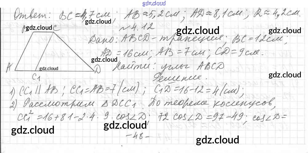 Ответ на задание 4.12 Учебник Геометрия за 9 (девятый) класс Мерзляк, Поляков Углубленный уровень 2019