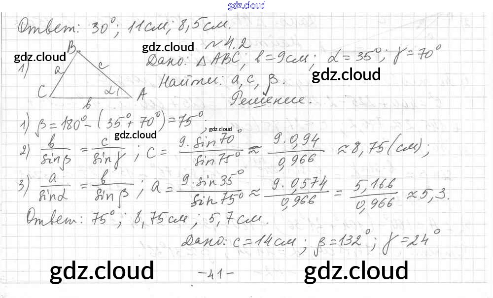 §4 Ответы к Главе 1. Решение треугольников по Геометрии 9 класс Учебник Мерзляк Углубленный уровень Вентана-граф