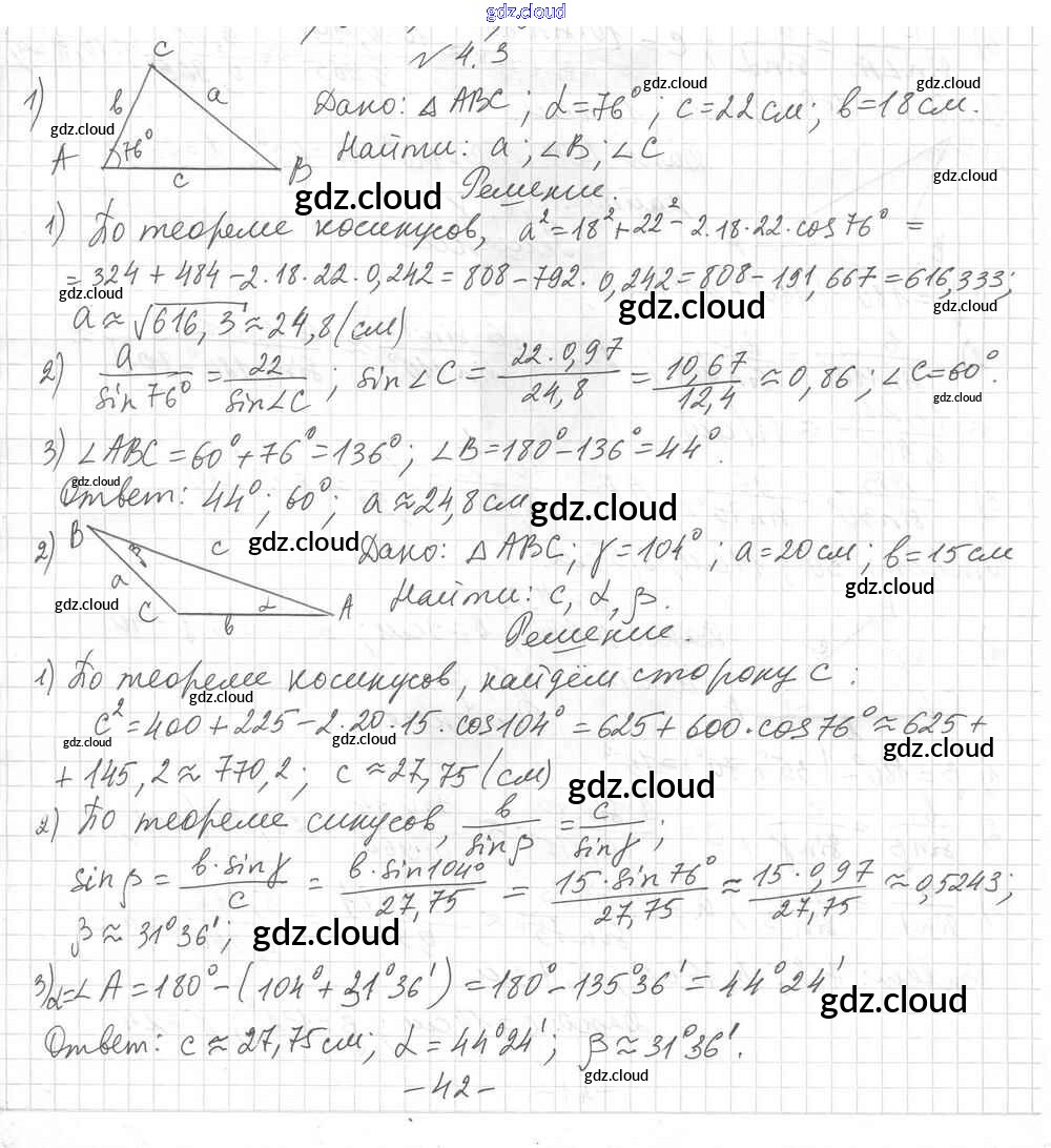 §4 Ответы к Главе 1. Решение треугольников по Геометрии 9 класс Учебник Мерзляк Углубленный уровень Вентана-граф