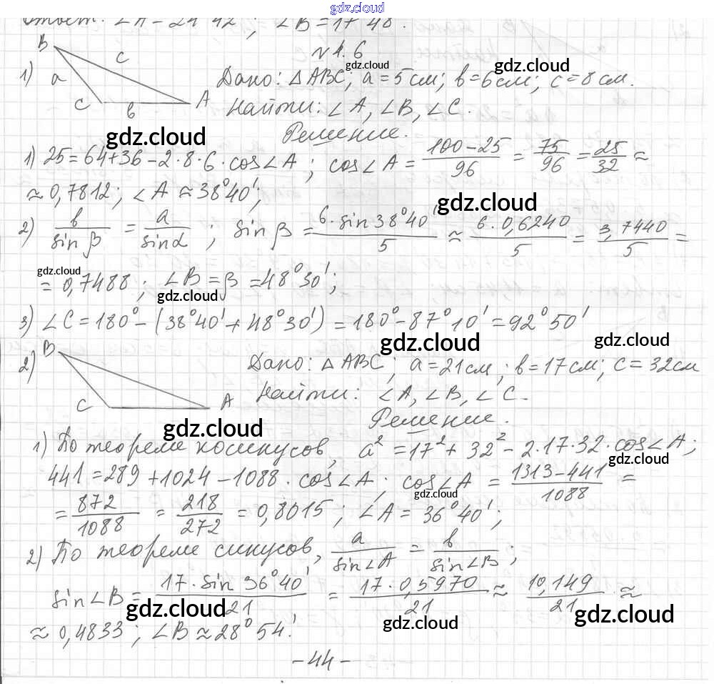 §4 Ответы к Главе 1. Решение треугольников по Геометрии 9 класс Учебник Мерзляк Углубленный уровень Вентана-граф