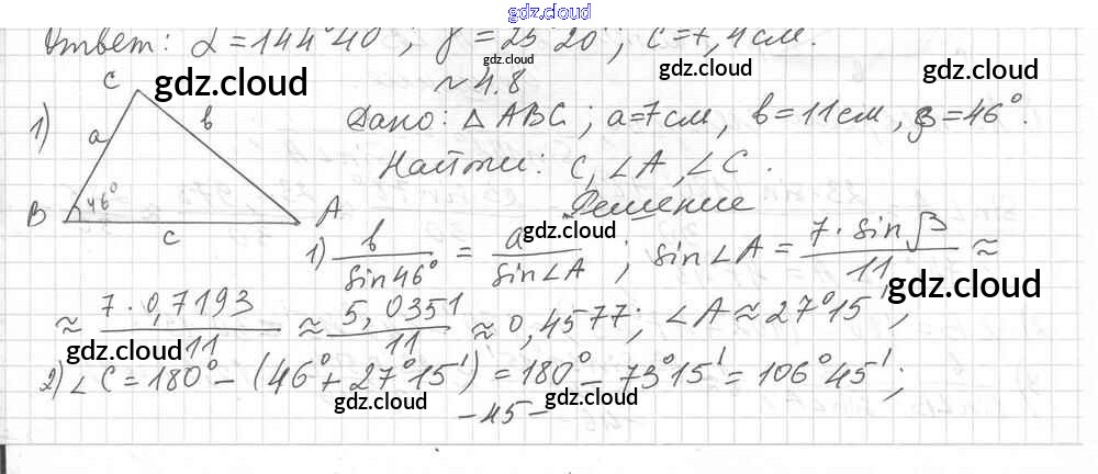 §4 Ответы к Главе 1. Решение треугольников по Геометрии 9 класс Учебник Мерзляк Углубленный уровень Вентана-граф