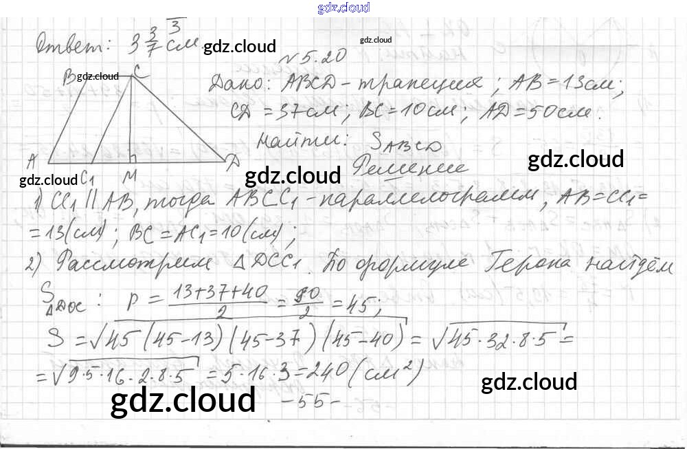 Ответ на задание 5.20 Учебник Геометрия за 9 (девятый) класс Мерзляк, Поляков Углубленный уровень 2019