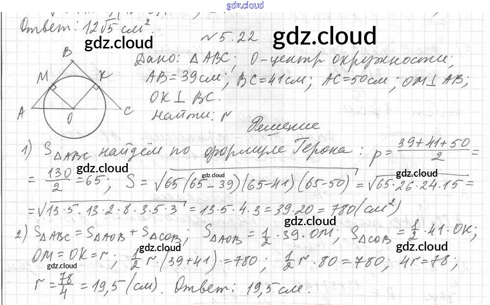 Ответ на задание 5.22 Учебник Геометрия за 9 (девятый) класс Мерзляк, Поляков Углубленный уровень 2019