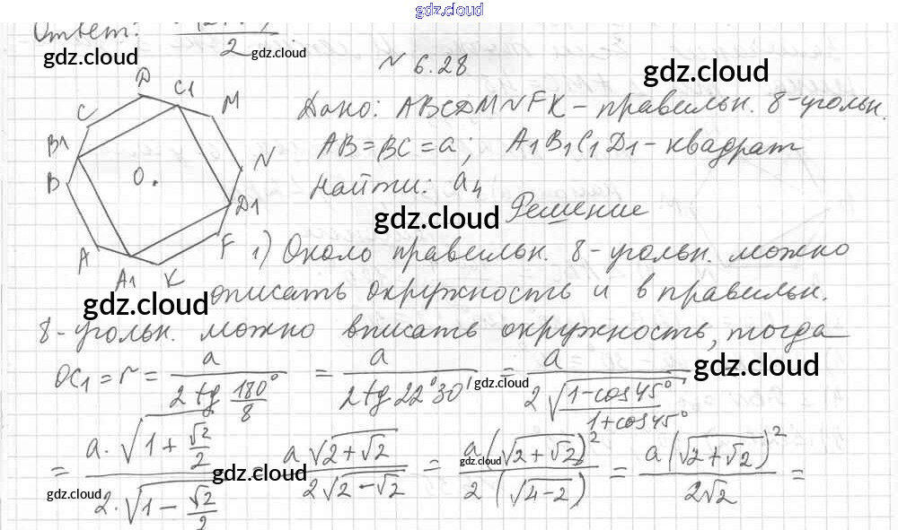 Ответ на задание 6.28 Учебник Геометрия за 9 (девятый) класс Мерзляк, Поляков Углубленный уровень 2019