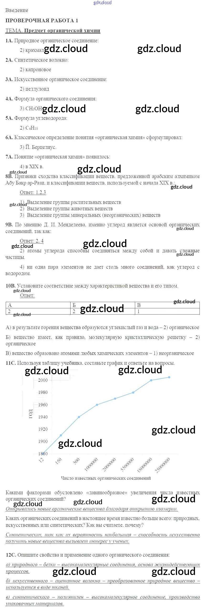 Ответ на задание 1 Тетрадь для оценки качества знаний Химия за 10 (десятый) класс Габриелян, Купцова 2014