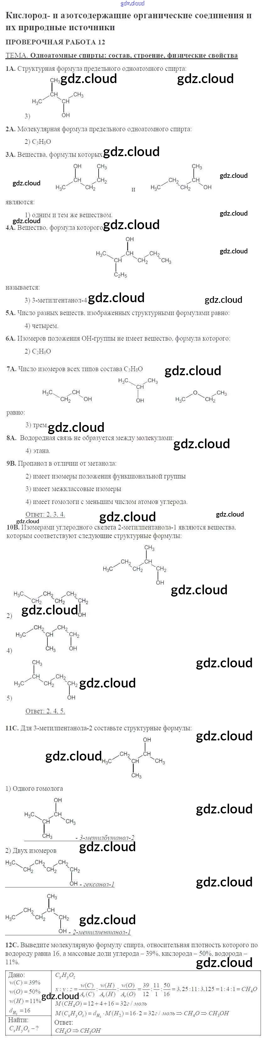 Ответ на задание 12 Тетрадь для оценки качества знаний Химия за 10 (десятый) класс Габриелян, Купцова 2014
