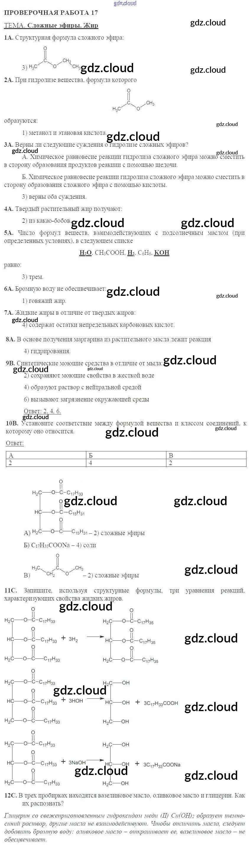 Ответ на задание 17 Тетрадь для оценки качества знаний Химия за 10 (десятый) класс Габриелян, Купцова 2014
