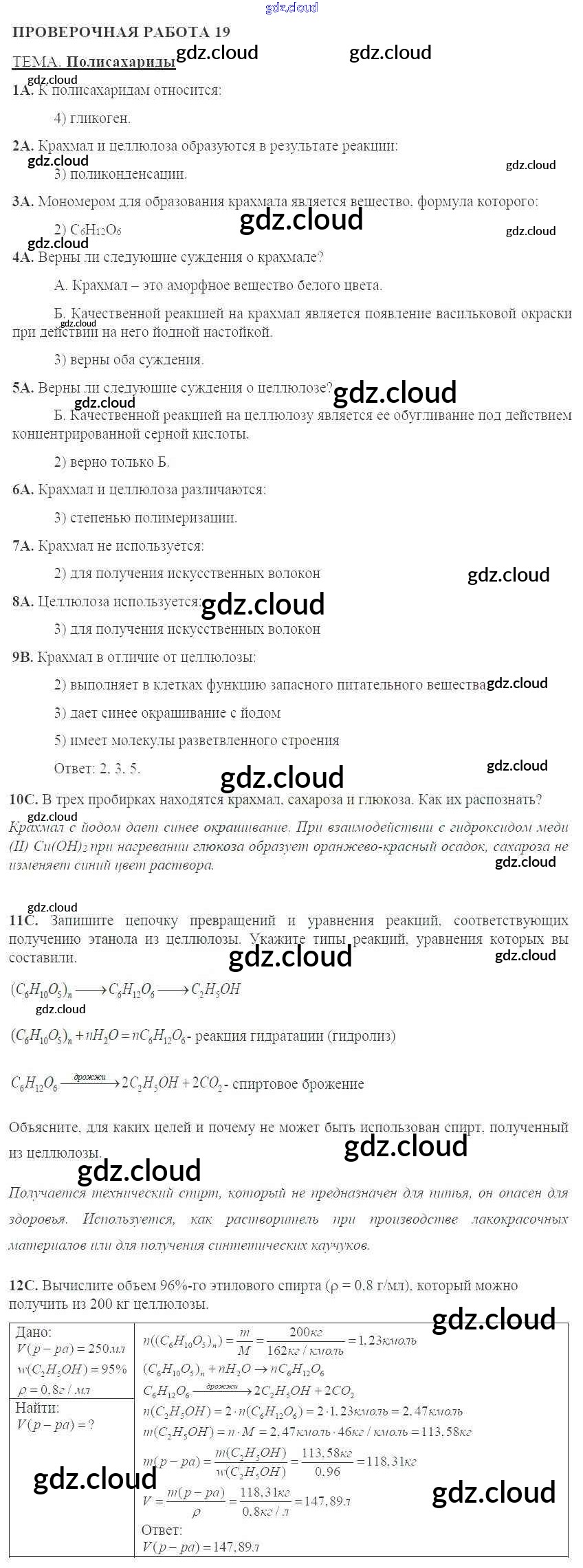 Ответы к проверочным работам по Химии 10 класс Тетрадь для оценки качества знаний Габриелян Дрофа