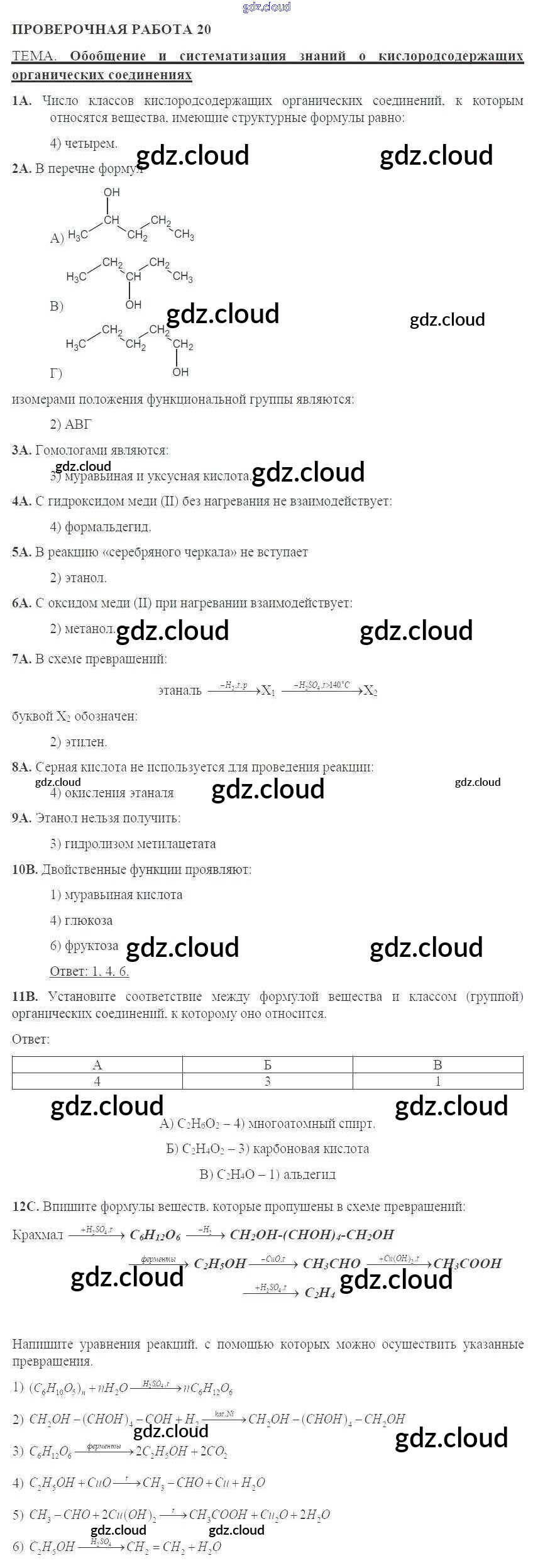 Ответы к проверочным работам по Химии 10 класс Тетрадь для оценки качества знаний Габриелян Дрофа