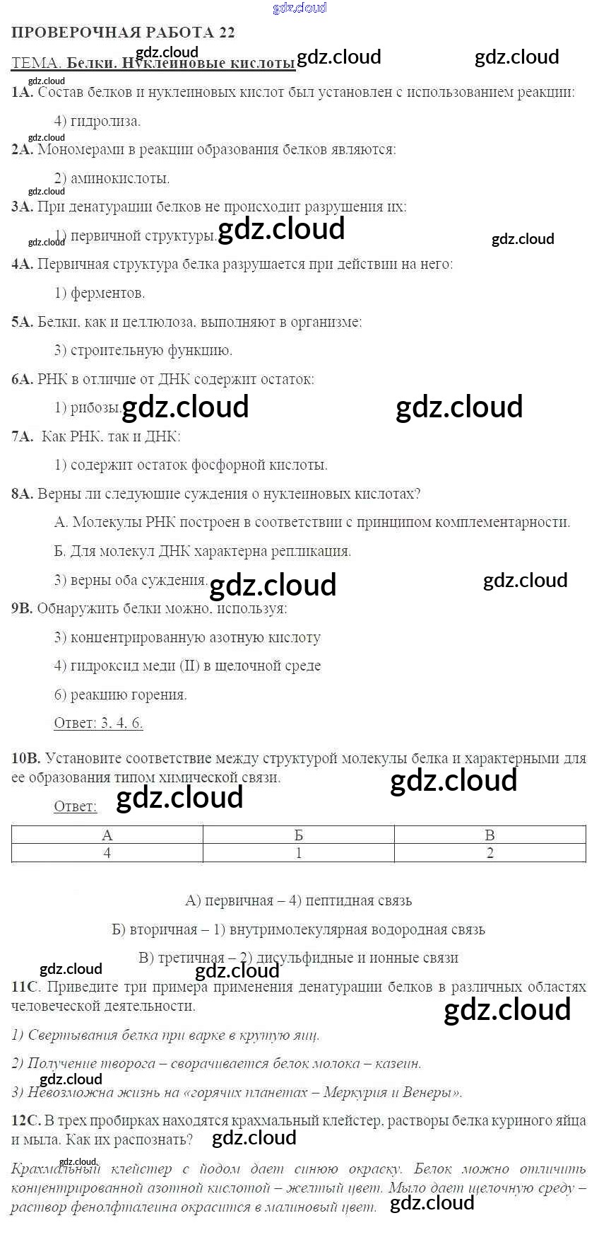 Ответы к проверочным работам по Химии 10 класс Тетрадь для оценки качества знаний Габриелян Дрофа