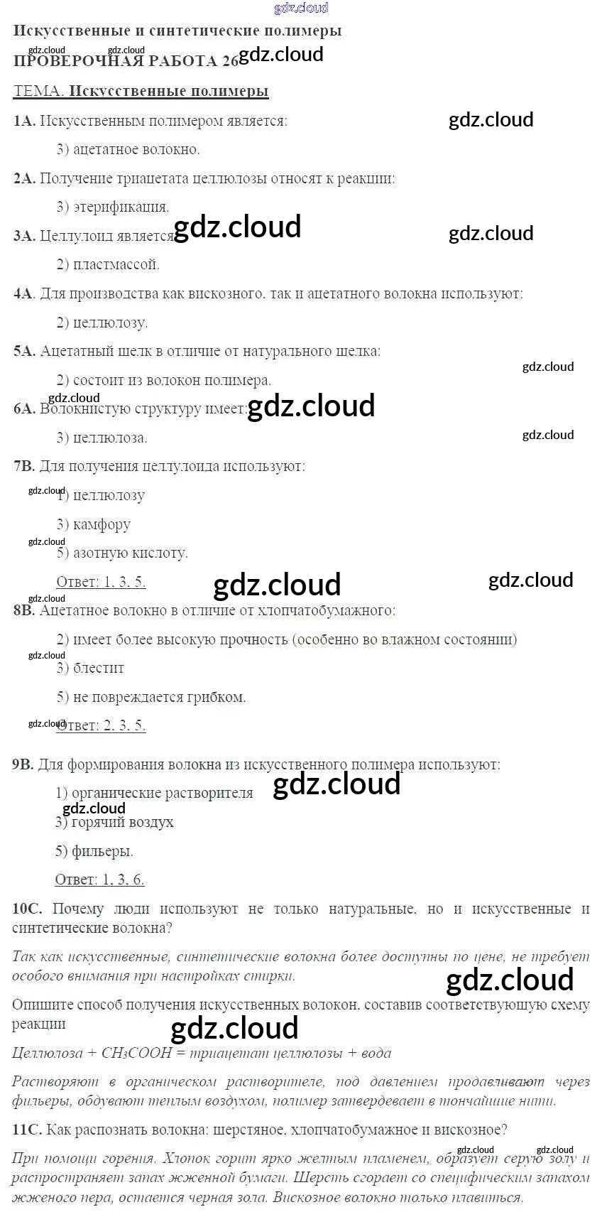 Ответы к проверочным работам по Химии 10 класс Тетрадь для оценки качества знаний Габриелян Дрофа