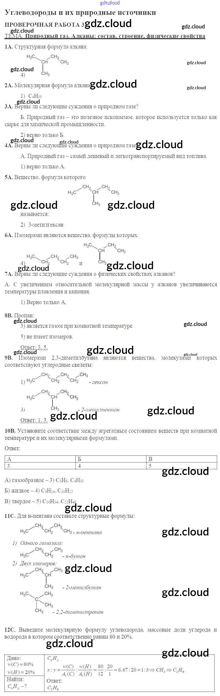 Ответы к проверочным работам по Химии 10 класс Тетрадь для оценки качества знаний Габриелян Дрофа