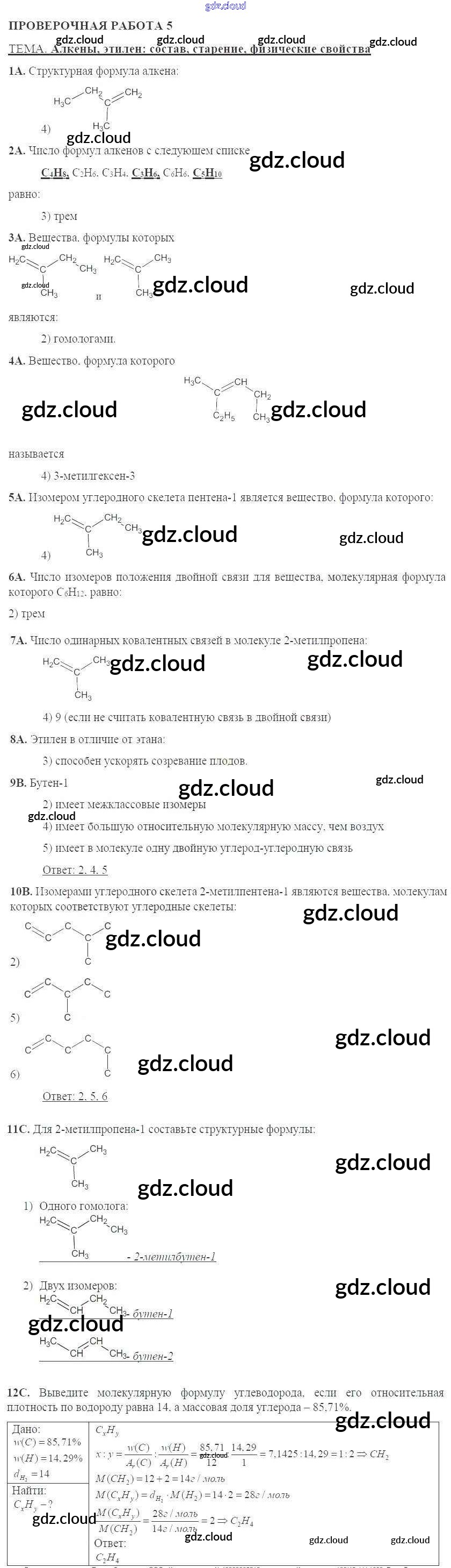 Ответ на задание 5 Тетрадь для оценки качества знаний Химия за 10 (десятый) класс Габриелян, Купцова 2014