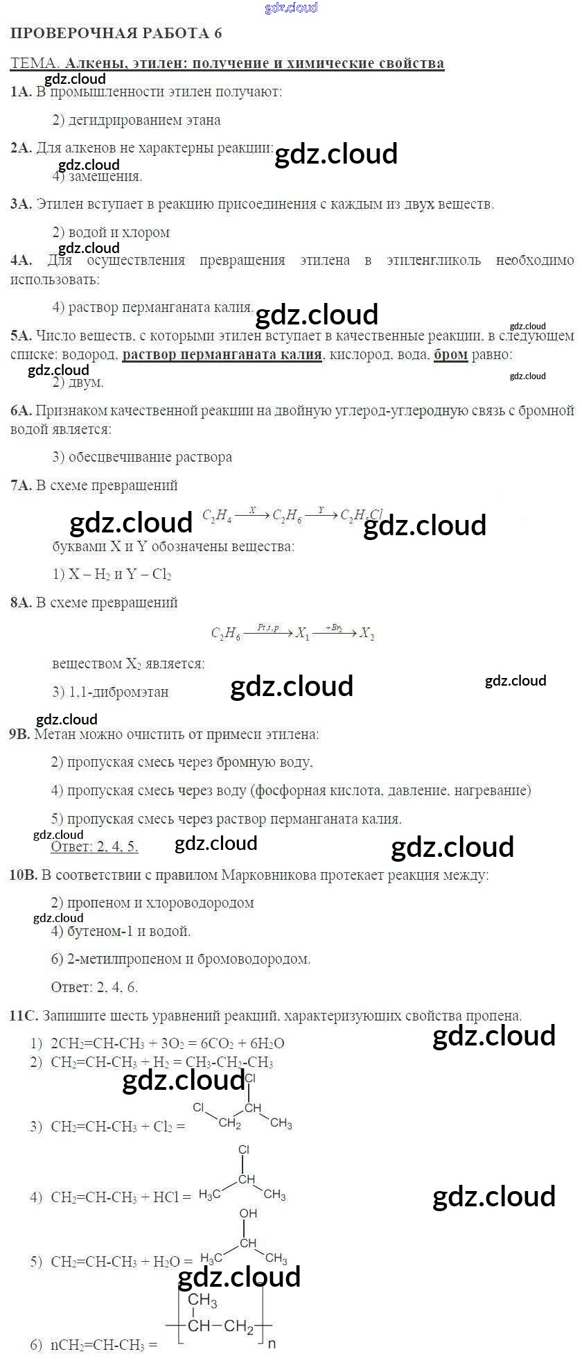 Ответ на задание 6 Тетрадь для оценки качества знаний Химия за 10 (десятый) класс Габриелян, Купцова 2014