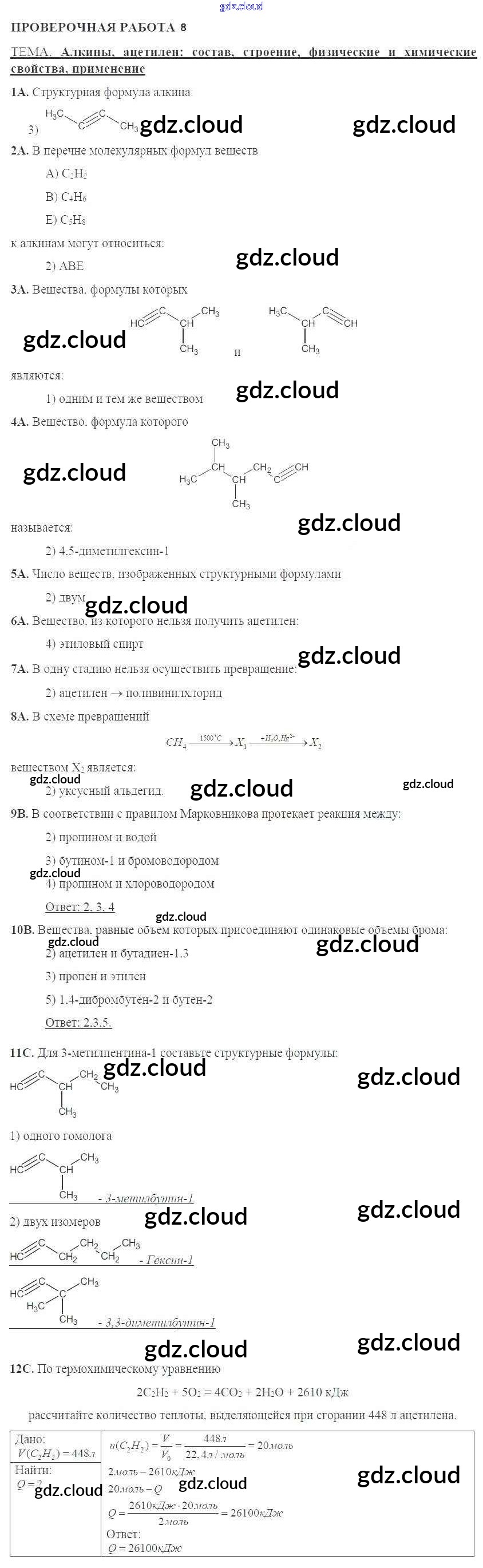 Ответы к проверочным работам по Химии 10 класс Тетрадь для оценки качества знаний Габриелян Дрофа