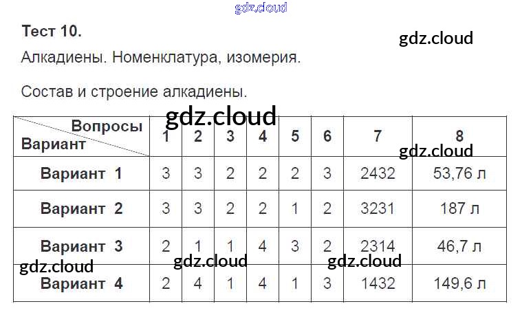 Ответ на задание 10 Тесты Химия за 10 (десятый) класс Боровских УМК 2013 ФГОС онлайн и без номера телефона.