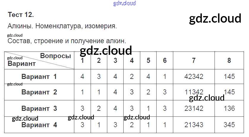 Ответ на задание 12 Тесты Химия за 10 (десятый) класс Боровских УМК 2013 ФГОС онлайн и без номера телефона.