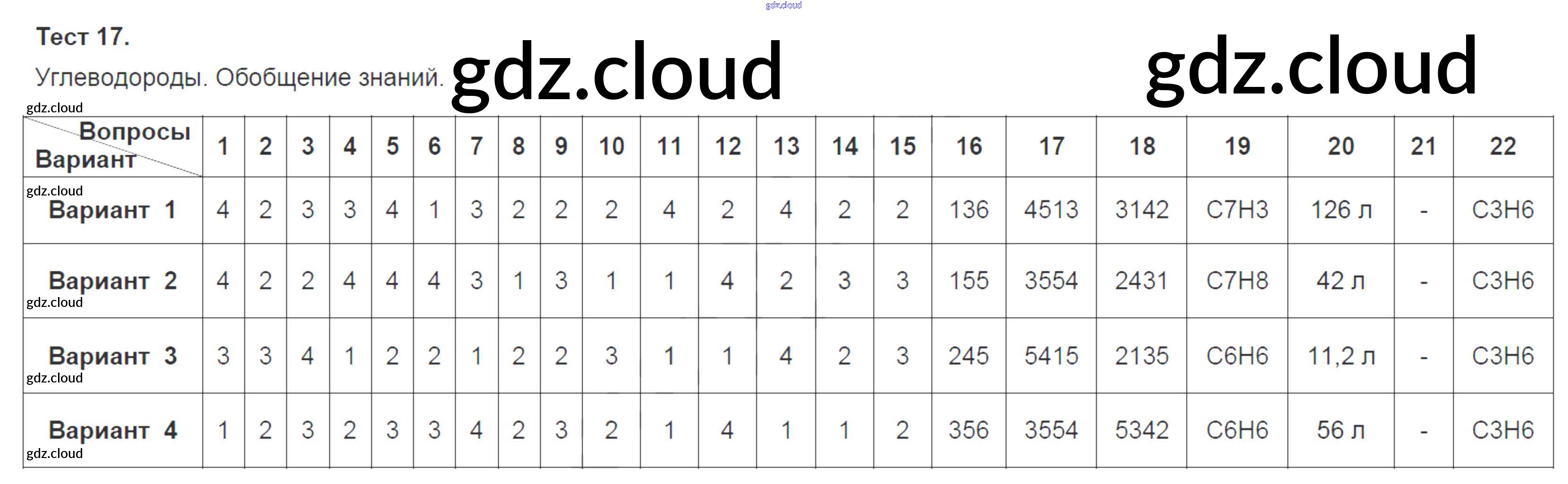 Ответ на задание 17 Тесты Химия за 10 (десятый) класс Боровских УМК 2013 ФГОС онлайн и без номера телефона.