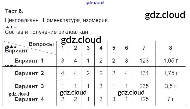 Ответ на задание 6 Тесты Химия за 10 (десятый) класс Боровских УМК 2013 ФГОС онлайн и без номера телефона.