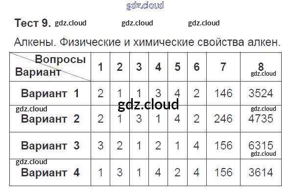 Ответ на задание 9 Тесты Химия за 10 (десятый) класс Боровских УМК 2013 ФГОС онлайн и без номера телефона.