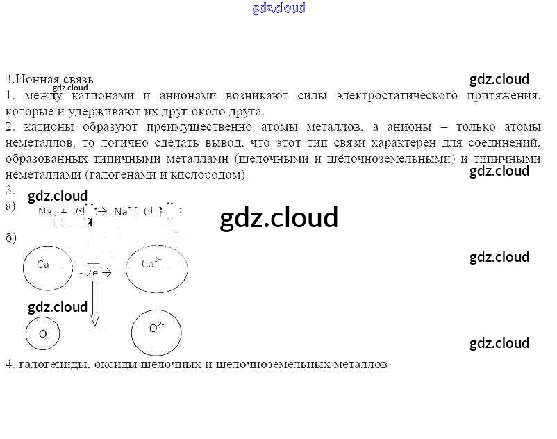 Ответы к теме: Ионная связь. Ионная кристаллическая решетка по Химии 11 класс Рабочая тетрадь Габриелян Базовый уровень Дрофа
