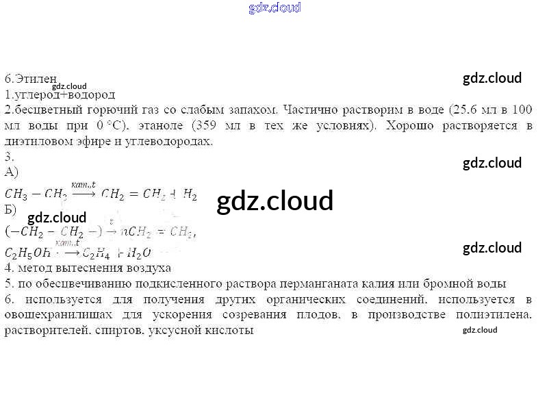 Ответы к теме: Представители газов (водород, кислород, углекислый газ, аммиак, этилен) по Химии 11 класс Рабочая тетрадь Габриелян Базовый уровень Дрофа