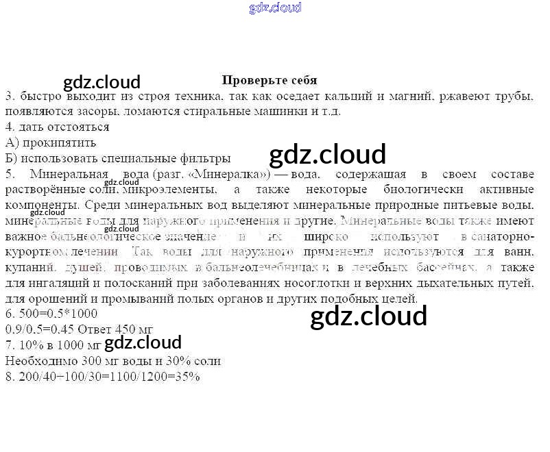 Жидкое состояние веществ. Вода. Массовая доля растворенного вещества / проверьте себя