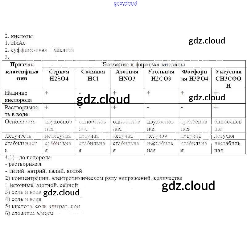 Ответы к теме: Кислоты по Химии 11 класс Рабочая тетрадь Габриелян Базовый уровень Дрофа