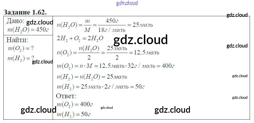 Ответ на задание 62 Сборник задач и упражнений Химия за 8, 9, 10, 11 (восьмой, девятый, десятый, одиннадцатый) класс Хомченко 2011