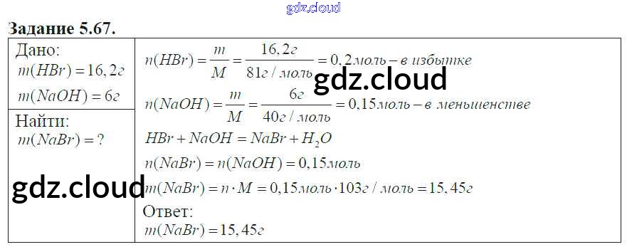 Ответ на задание 67 Сборник задач и упражнений Химия за 8, 9, 10, 11 (восьмой, девятый, десятый, одиннадцатый) класс Хомченко 2011