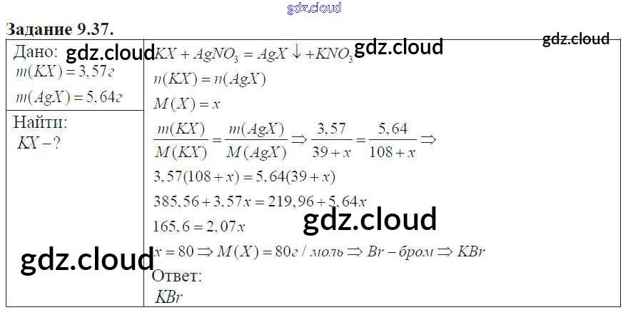 Ответ на задание 37 Сборник задач и упражнений Химия за 8, 9, 10, 11 (восьмой, девятый, десятый, одиннадцатый) класс Хомченко 2011