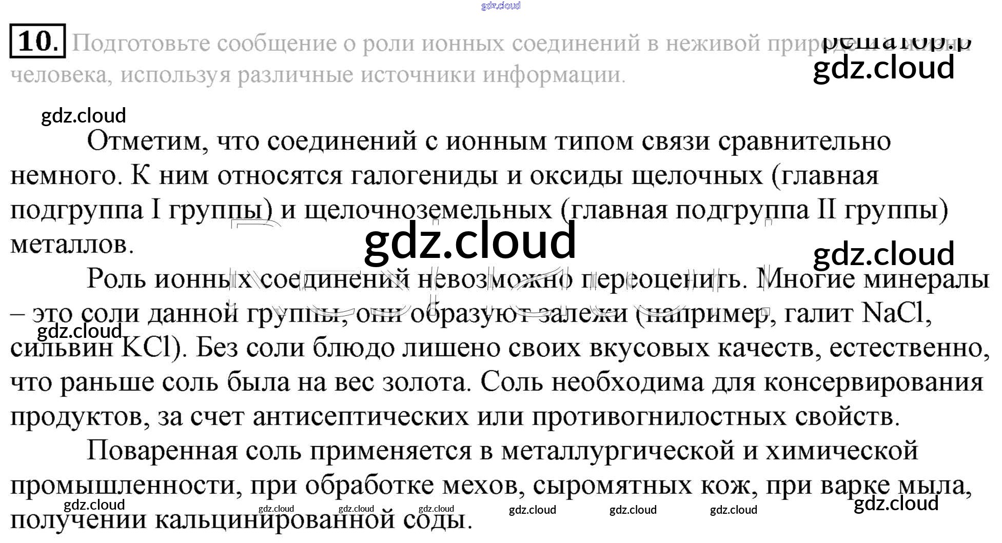 Ответ на задание 10 Учебник Химия за 11 (одиннадцатый) класс Габриелян Вертикаль Базовый уровень 2013 ФГОС онлайн и без номера телефона.
