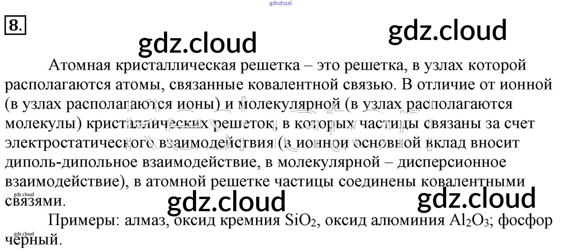 Ответ на задание 8 Учебник Химия за 11 (одиннадцатый) класс Габриелян Вертикаль Базовый уровень 2013 ФГОС онлайн и без номера телефона.