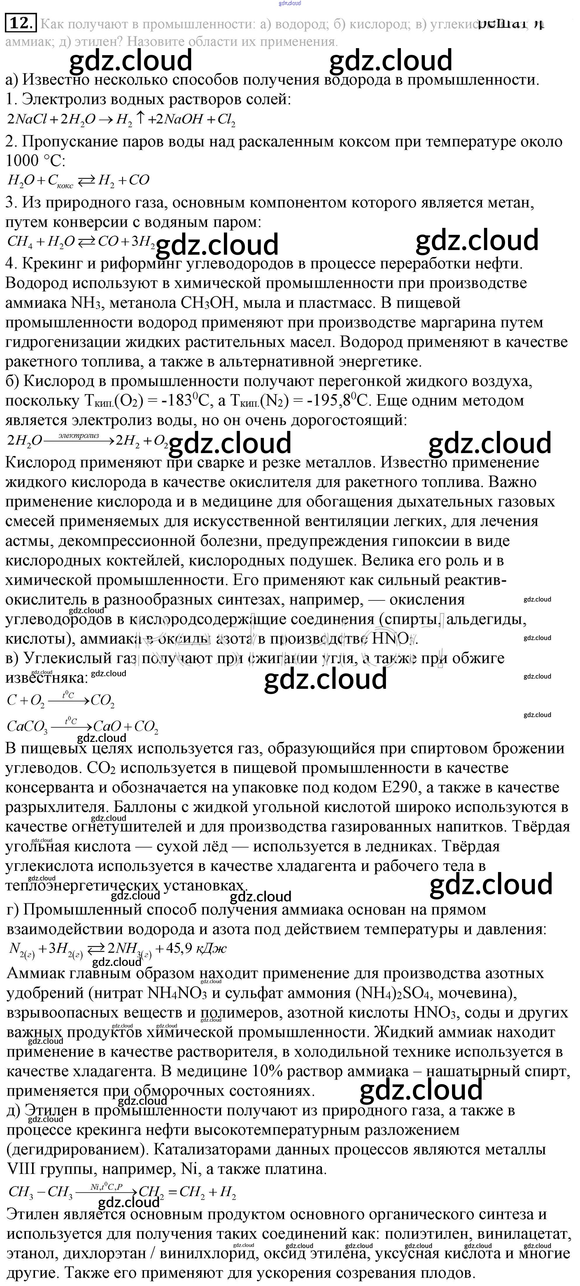 Ответ на задание 12 Учебник Химия за 11 (одиннадцатый) класс Габриелян Вертикаль Базовый уровень 2013 ФГОС онлайн и без номера телефона.
