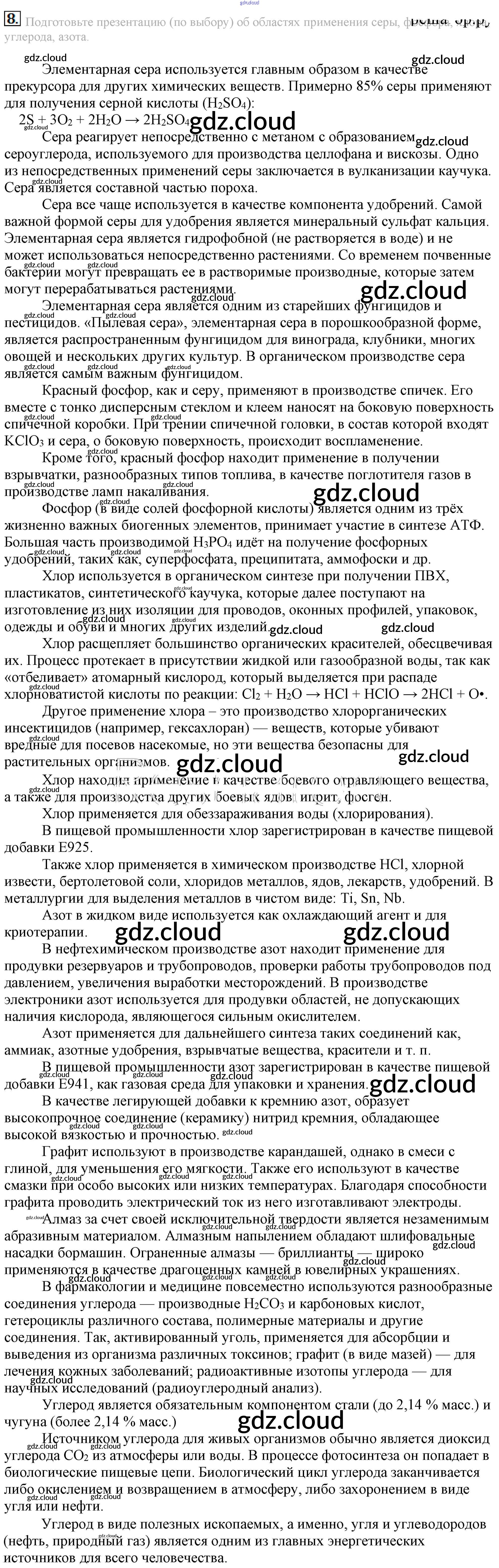 Ответ на задание 8 Учебник Химия за 11 (одиннадцатый) класс Габриелян Вертикаль Базовый уровень 2013 ФГОС онлайн и без номера телефона.