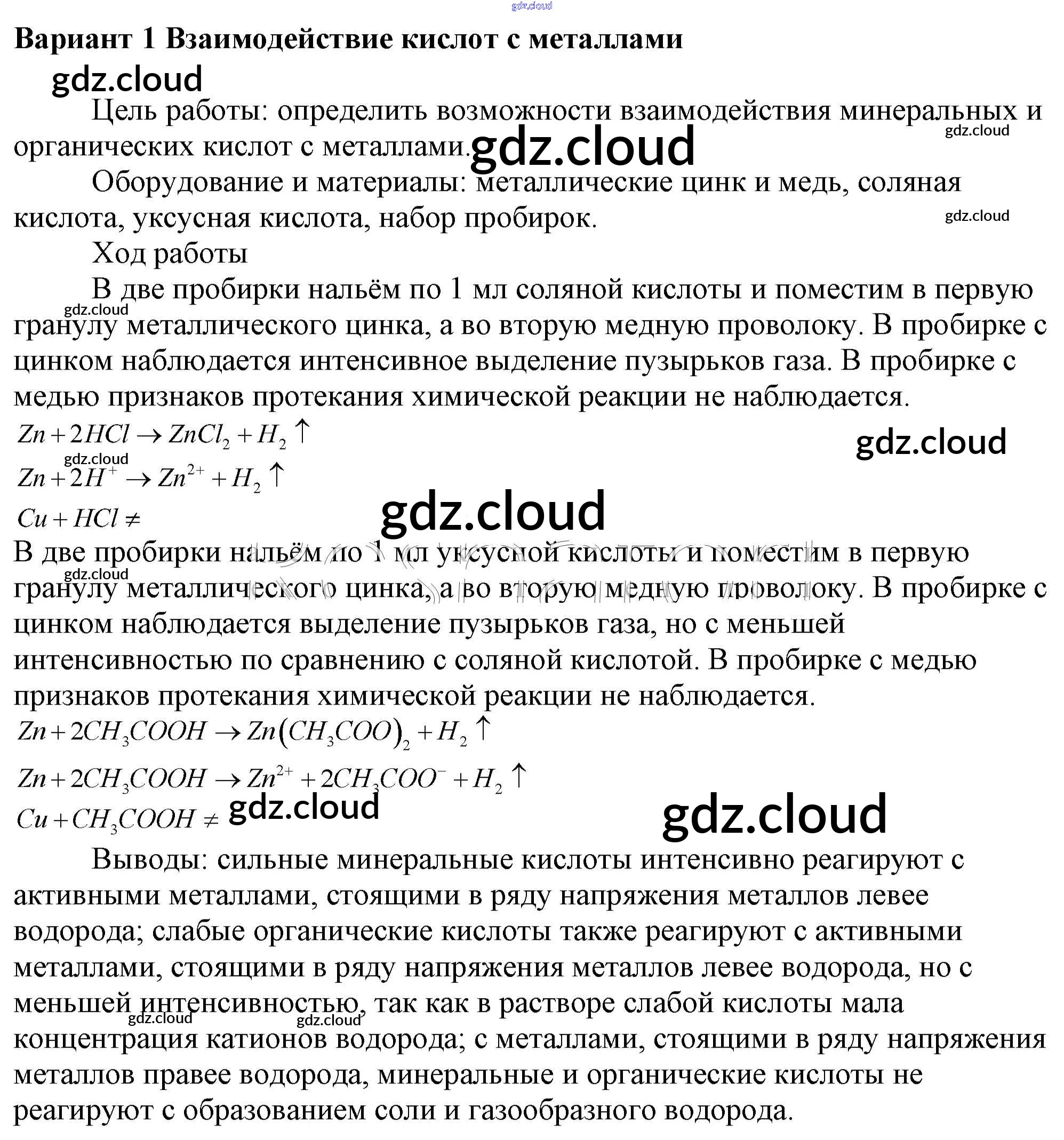 Ответы к практическим работам 2. Химические свойства кислот по Химии 11 класс Учебник Габриелян Вертикаль Базовый уровень Дрофа