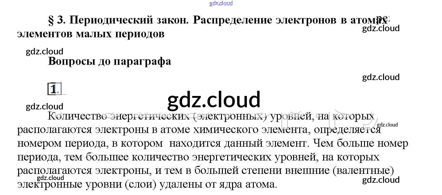 Вопросы до параграфа Ответы к § 3. Периодический закон. Распределение электронов в атомах элементов малых периодов по Химии 11 класс Учебник Рудзитис Базовый уровень Просвещение