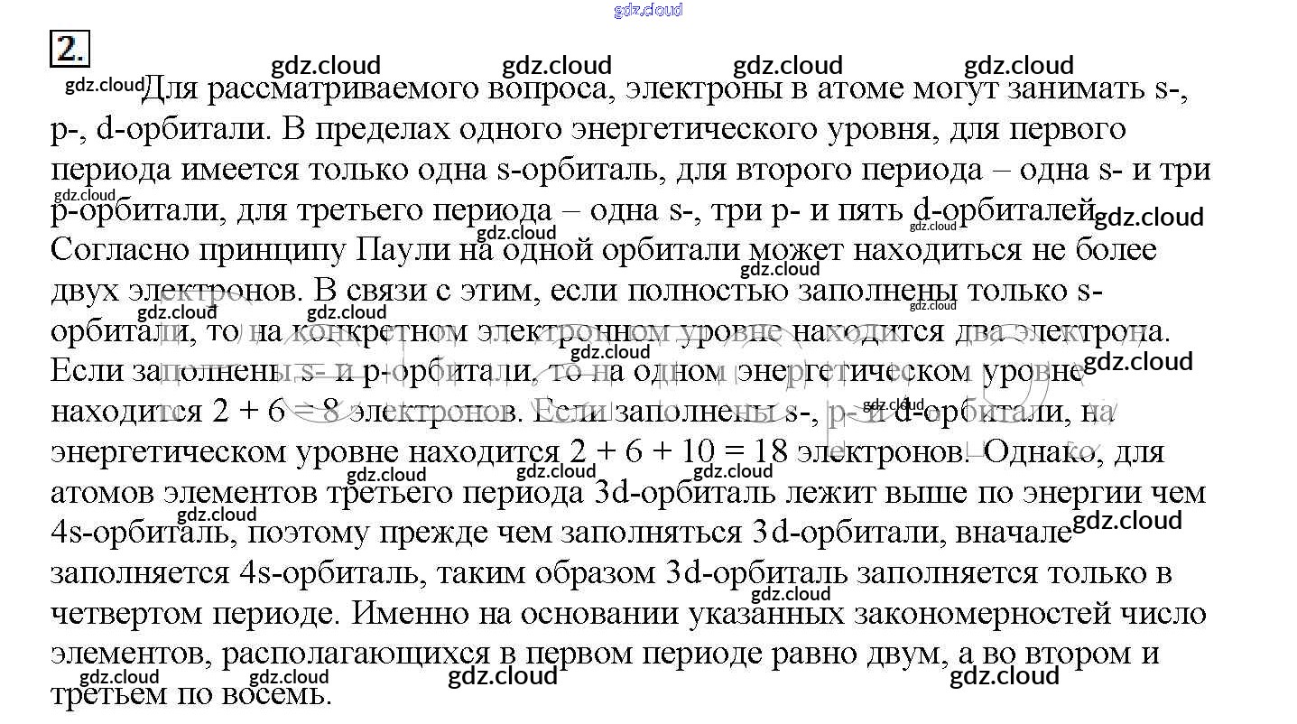 Ответ на задание 2 Учебник Химия за 11 (одиннадцатый) класс Рудзитис, Фельдман Базовый уровень 2017
