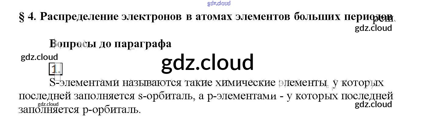 Вопросы до параграфа Ответы к § 4. Распределение электронов в атомах элементов больших периодов по Химии 11 класс Учебник Рудзитис Базовый уровень Просвещение