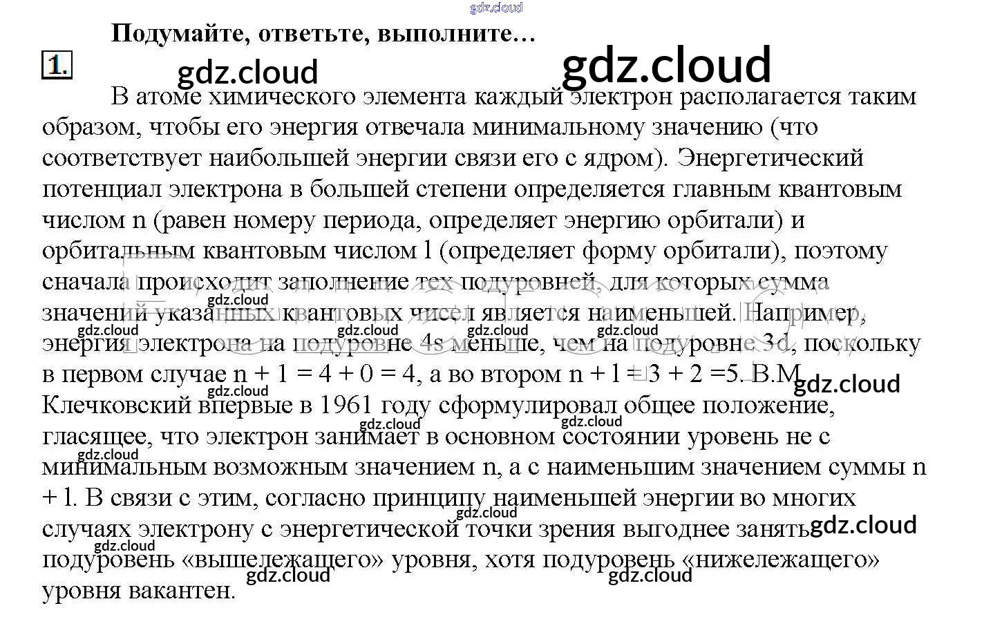 Подумайте, ответьте, выполните Ответы к § 4. Распределение электронов в атомах элементов больших периодов по Химии 11 класс Учебник Рудзитис Базовый уровень Просвещение