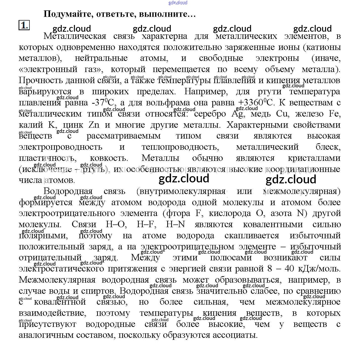 Подумайте, ответьте, выполните Ответы к § 8. Металлическая связь. Водородная связь по Химии 11 класс Учебник Рудзитис Базовый уровень Просвещение