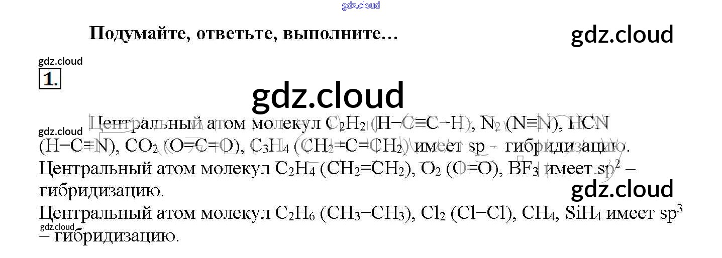 Подумайте, ответьте, выполните Ответы к § 9. Пространственное строение молекул по Химии 11 класс Учебник Рудзитис Базовый уровень Просвещение