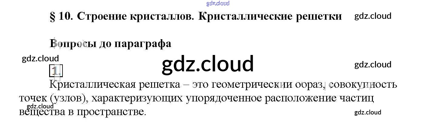 Вопросы до параграфа Ответы к § 10. Строение кристаллов. кристаллические решётки по Химии 11 класс Учебник Рудзитис Базовый уровень Просвещение