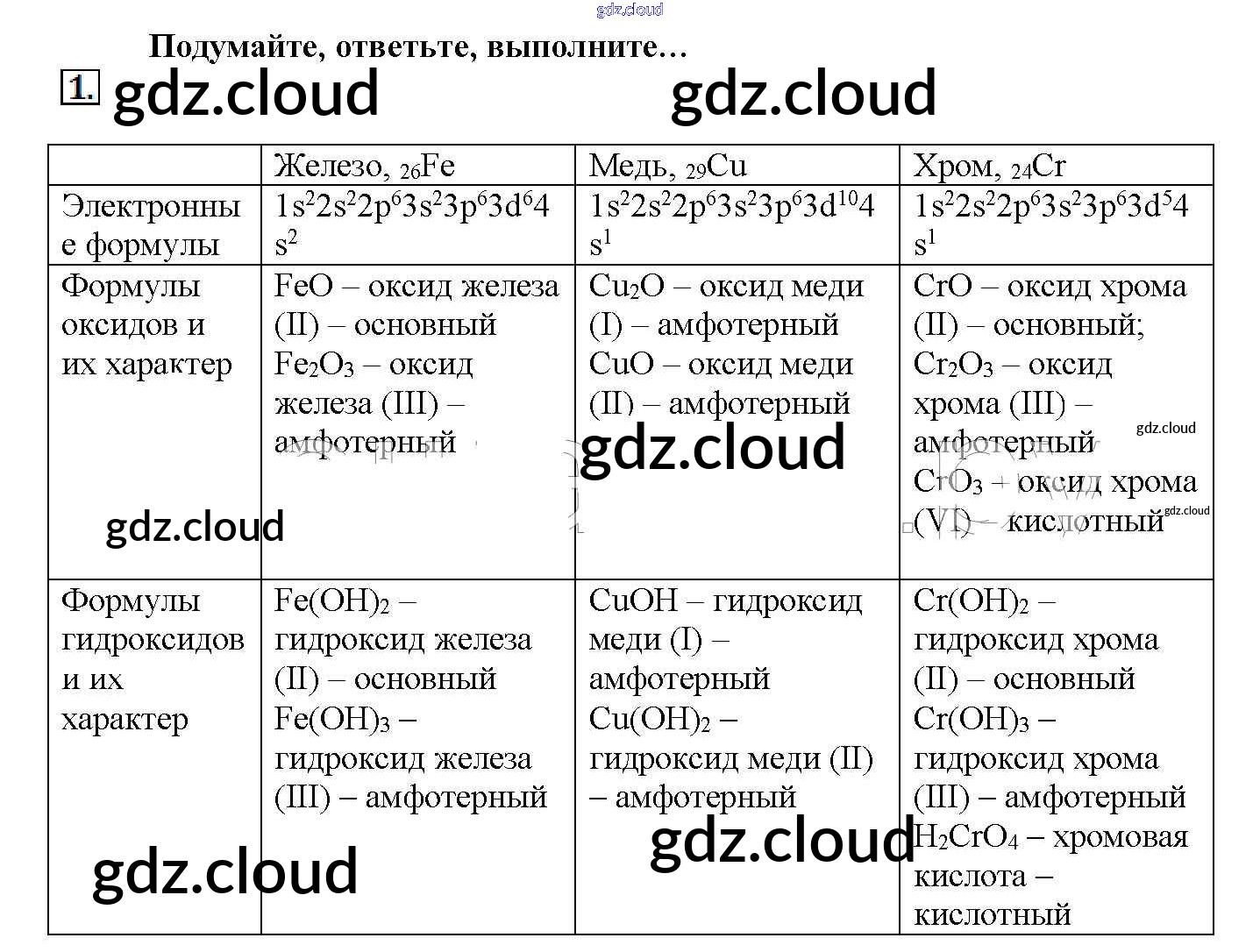 Подумайте, ответьте, выполните Ответы к § 28. Общий обзор металлических элементов б-групп по Химии 11 класс Учебник Рудзитис Базовый уровень Просвещение