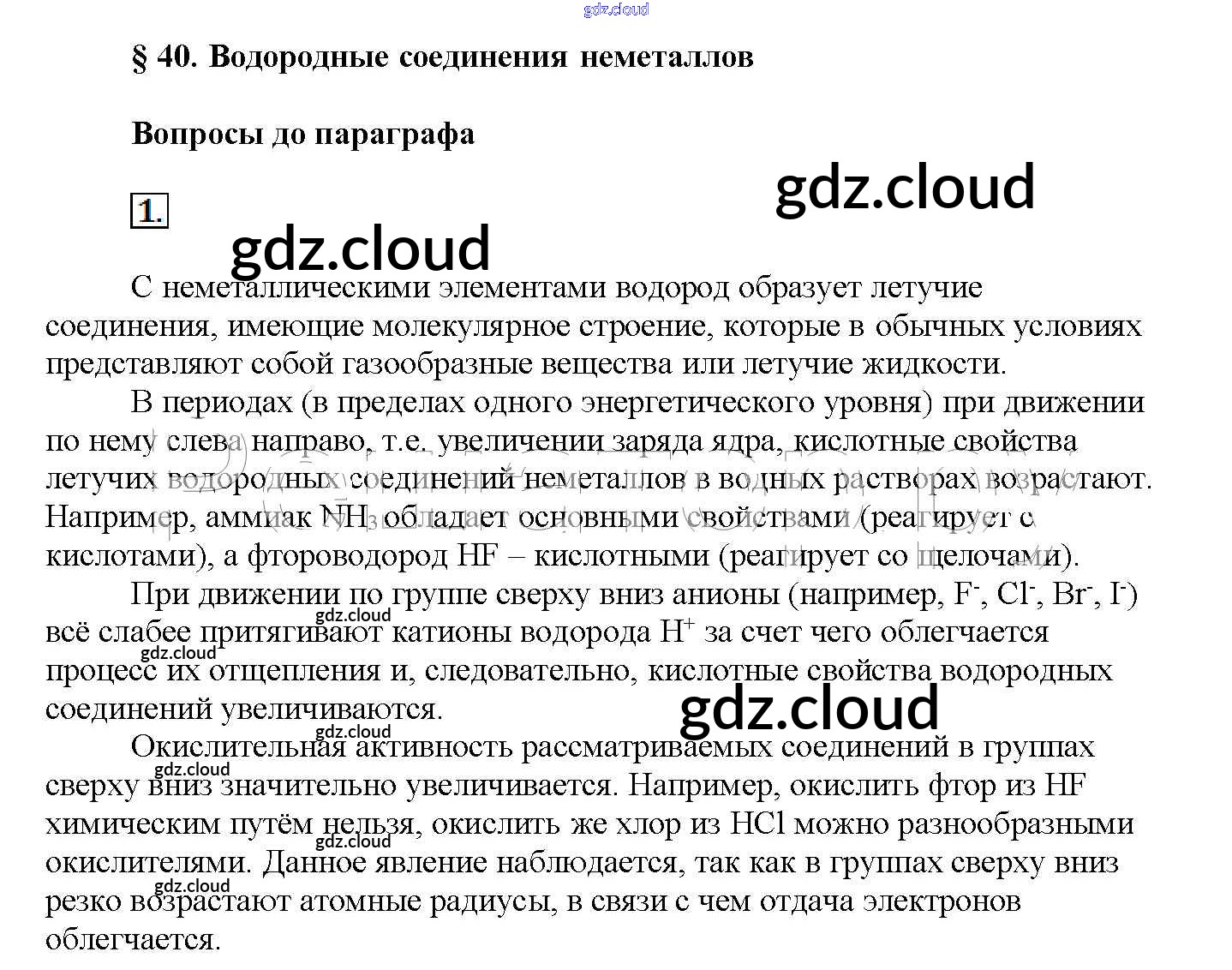 Вопросы до параграфа Ответы к § 40. Водородные соединения неметаллов по Химии 11 класс Учебник Рудзитис Базовый уровень Просвещение