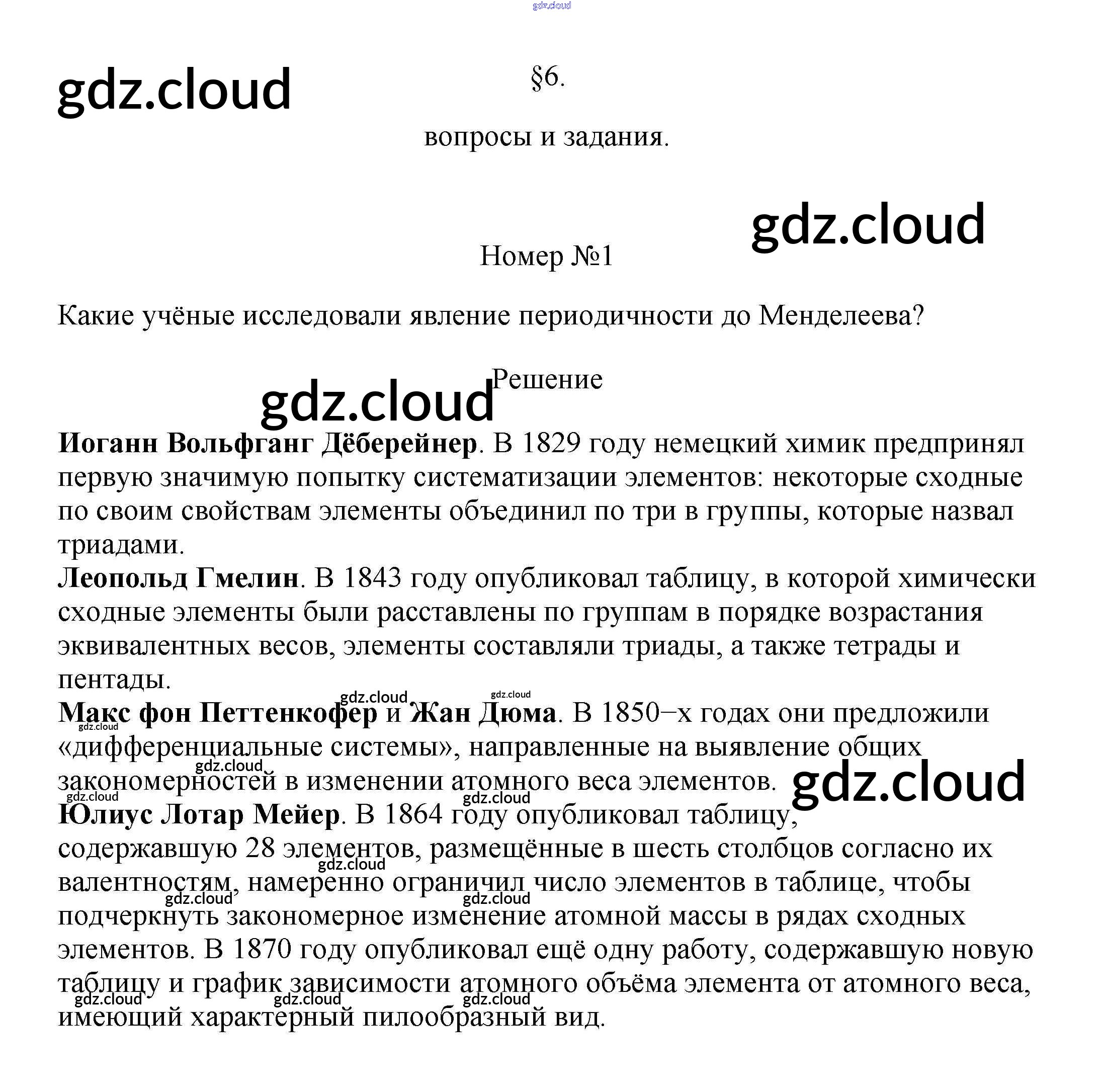 Вопросы и задания Ответы к §6. История создания Периодической системы химических элементов Д.И.Менделеева по Химии 7 класс Учебник Еремин Дрофа