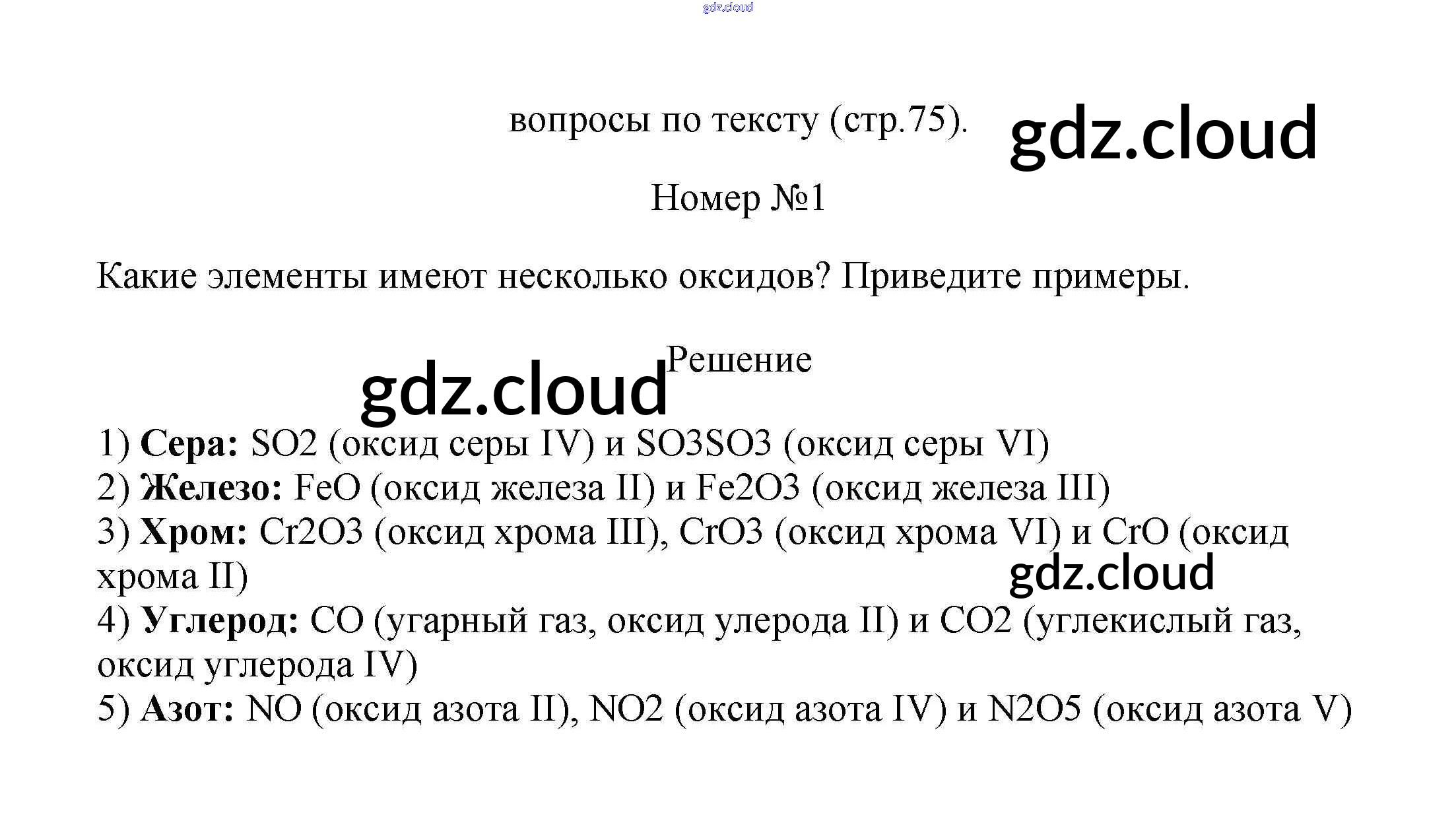 Ответ на задание стр.75 Учебник Химия за 7 (седьмой) класс Еремин, Дроздов, Лунин 2020